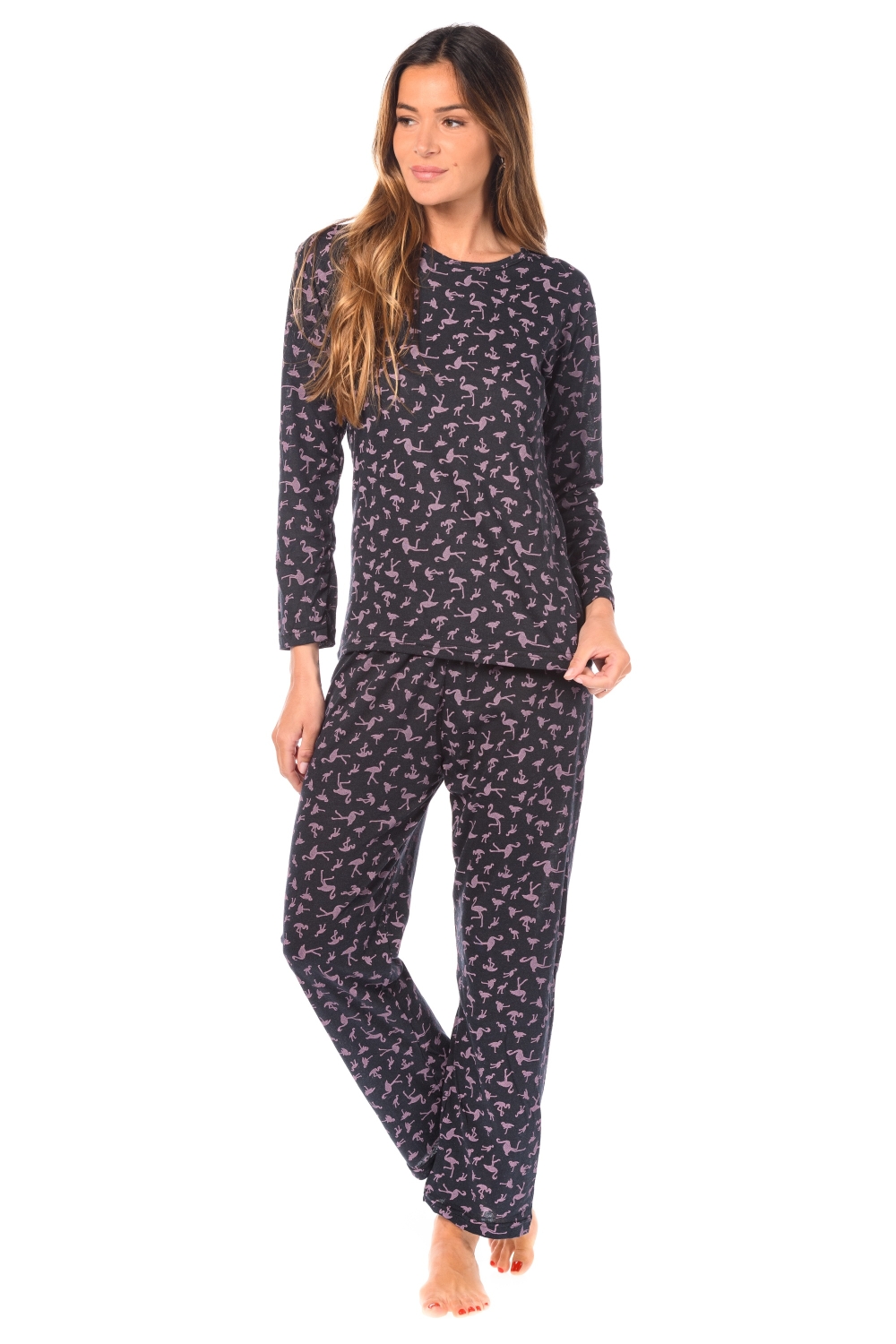 Patterned long-sleeved cotton T-shirt to match trousers