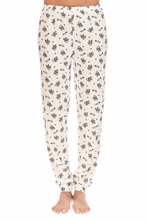 Round collar and sleeves finished with a patterned repeat of the trousers