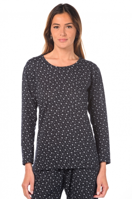 Tee-shirt manches longues en coton à motifs assorti au pantalon