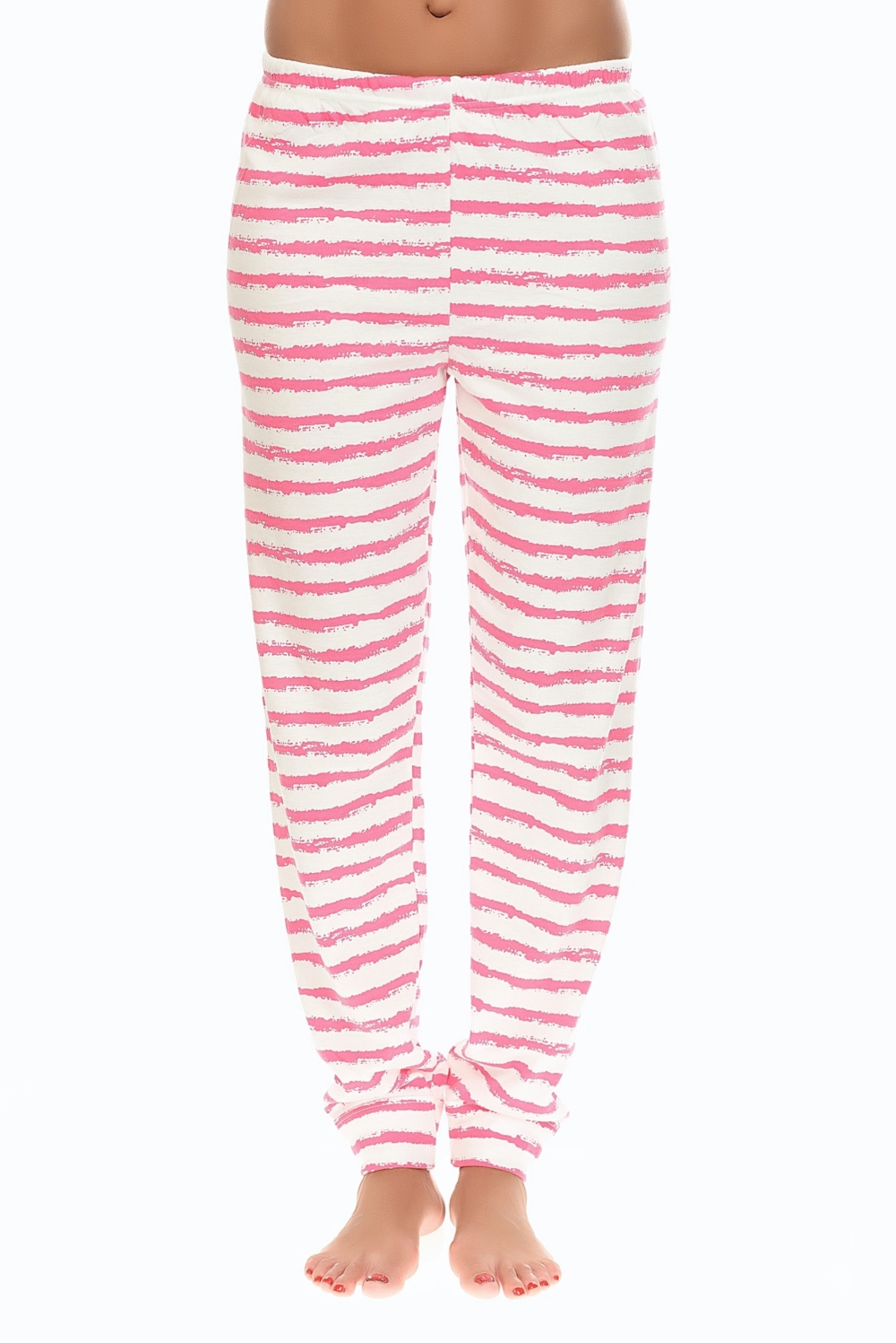 Calças direitas em malha polar às riscas muito suave