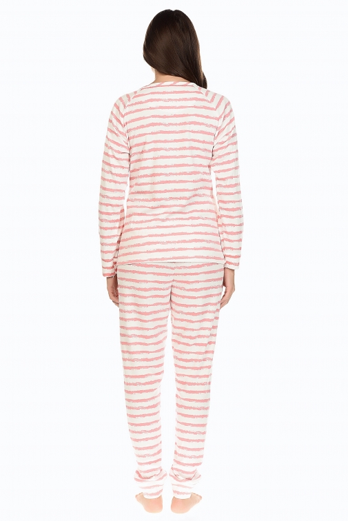 Calças direitas em malha polar às riscas muito suave